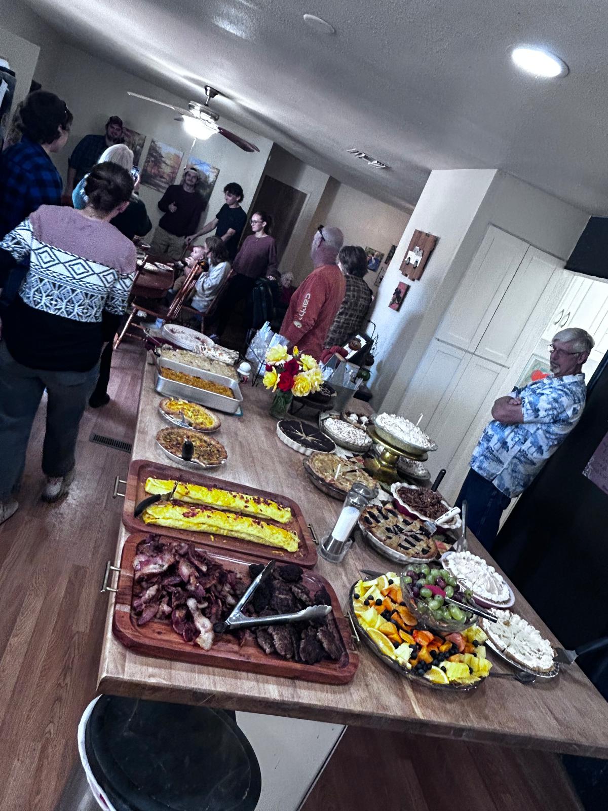 Things are going good with us. God has blessed us and contiues to take care of us. Jennifer has been busy taking care of her mom, and tried to volunteer down at the school for a hour each day. She has been hosting women’s bible study at the house and then for thanksgiving we had pie brunch. Pie brunch, what is that? I am glad you asked! Thanksgiving day is all about fellowship, eating, and giving thanks to God for your many blessings! When you eat your turkey and potatoes, you are usually so full, you don’t want to eat that pie. So many years ago, Jen decide she wanted to make the pies earlier and we would have brunch with mostly pie. Well, it has grown and grown. We started inviting people over and this year we had 81 people here for brunch. We had 24 pies, eggs, bacon, sausage, and fruit. It was so much fun.